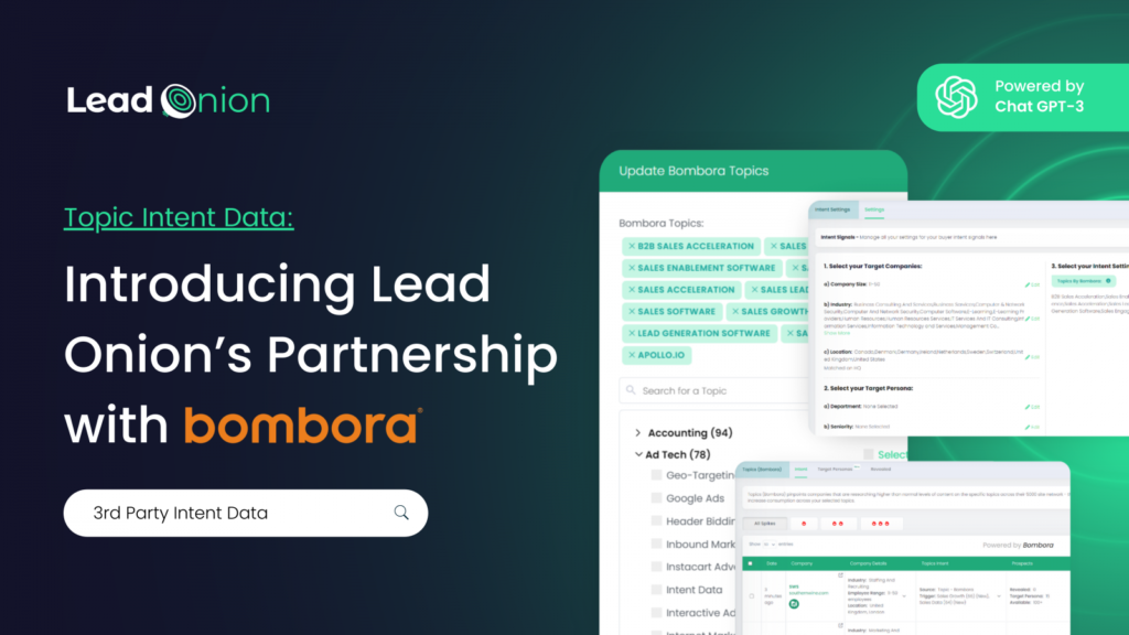 Understanding your audience's behavior is crucial for driving successful marketing and sales strategies. We're excited to announce our partnership with Bombora, a leader in B2B intent data, launching 1st September 2024. This collaboration enhances Lead Onion's Topic Intent feature, providing you with real-time insights into the content your target audience is engaging with and giving […]